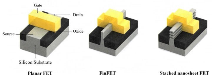 晶體管的最小的結構寬度在22nm之前,通常是柵極寬度,被稱為特征尺寸。隨著晶體管面積的日益縮小,特征尺寸和廠家的命名逐漸脫節(jié),而柵極寬度也不再是晶體管的最小結構寬度,例如在FinFET中,F(xiàn)in的寬度通常是小于柵極寬度的,在GAA堆疊納米片晶體管中,納米片的厚度也是要小于柵極寬度的。